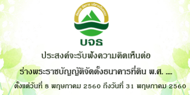 สถาบันบริหารจัดการธนาคารที่ดิน (องค์การมหาชน) ประสงค์จะรับฟังความคิดเห็นต่อต่อร่างพระราชบัญญัติธนาคารที่ดิน พ.ศ. ….