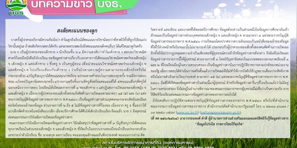 สำนักงานคณะกรรมการข้อมูลข่าวสารของราชการ ได้จัดทำบทความเผยแพร่ความรู้เกี่ยวกับพระราชบัญญัติข้อมูลข่าวสารของราชการ พ.ศ. 2540 ประจำเดือนตุลาคม 2564 ผ่านเว็บไซต์ www. oic.go.th ซึ่งสถาบันบริหารจัดการธนาคารที่ดิน เห็นว่าเป็นประโยชน์แก่สาธารณะ จึงนำมาเผยแพร่ เพื่อความเข้าใจมากยิ่งขึ้น และสามารถติดตามได้ทางเว็บไซต์ดังกล่าวได้เช่นกัน