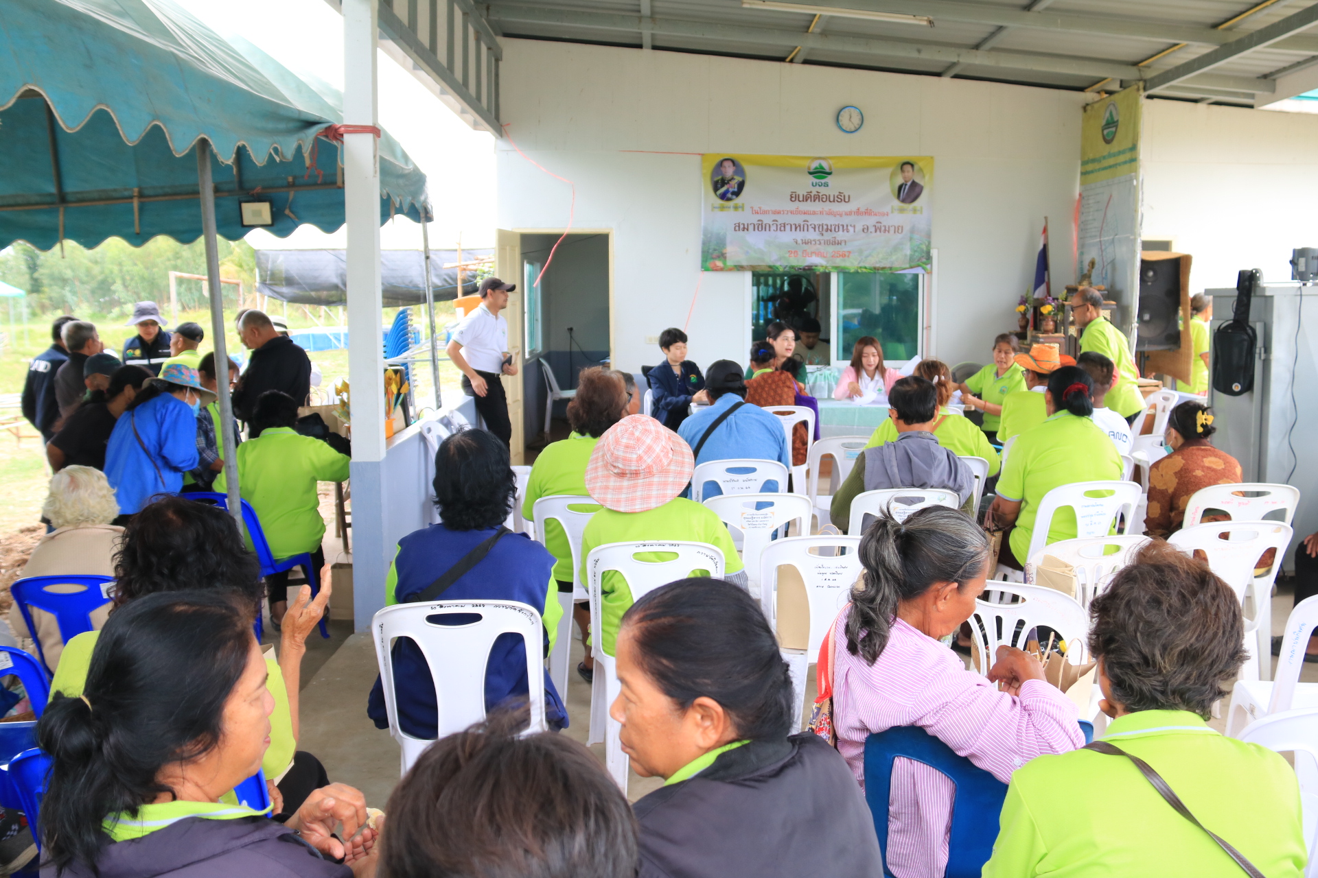 วันที่ 20 มีนาคม 2567 นายกุลพัชร ภูมิใจอวด ผู้อำนวยการสถาบันบริดหารจัดการธนาคารที่ดิน พล.อ.สัมพันธ์ ธัญญพืช ประธานอนุกรรมการสนับสนุนและแก้ไขปัญหาในพื้นที่ นายประยงค์ ดอกลำไย กรรมการผู้ทรงคุณวุฒิ บจธ. นายเอก วรรณประทีป รองผู้อำนวยการสถาบันบริหารจัดการธนาคารที่ดิน และเจ้าหน้าที่ บจธ. ลงพื้นที่วิสาหกิจชุมชนไร่นาสวนผสม เกษตรกรฐานรากช่องโคพัฒนา ตำบลรังกาใหญ่ อำเภอพิมาย จังหวัดนครราชสีมา เพื่อชี้แจงทำความเข้าใจ ในกระบวนการทำสัญญาเช่าซื้อที่ดิน ของสมาชิกเกษตรกรฯ จำนวน 53 ครัวเรือน ในพื้นที่ 150 ไร่เศษ รวมพื้นที่ส่วนกลาง ซึ่งปัจจุบันสมาชิกทุกคนได้ทำเกษตรผสมผสานปลูกผัก เลี้ยงปลา ปลูกไม่เศรษฐกิจ และทำปุ๋ยหมัก มีรายได้ที่มั่นคงมีความเป็นอยู่ที่ดีขึ้น มีเงินออมของกลุ่มฯ พร้อมเข้าสู่กระบวนการเช่าซื้อที่ดินแล้ว ซึ่งจากเดิมสมาชิกเคยเป็นผู้ที่ไม่มีที่ดินทำกินหรือถูกขับไล่รื้อออกจากที่ดินเดิมเนื่องจากอยู่ในเขตพื้นที่ดำเนินโครงการของรัฐฯ การก่อสร้างทางด่วนพิเศษบางปะอิน-นครราชสีมา โดย บจธ. ได้เข้ามาช่วยเหลือและจัดให้เกษตรกรได้เข้าอยู่ทำกิน ตั้งแต่ปี 2563 ในเบื้องต้นคณะผู้บริหาร บจธ. ได้ชี้แจงทำความเข้าใจให้แก่สมาชิกในเรื่องของกระบวนการทำสัญญาเช่าซื้อที่ดิน ในอัตราดอกเบี้ยร้อยละ 3 ต่อปีระยะเวลาผ่อนชำระไม่เกิน 30 ปี และสมาชิกได้ตกลงทำสัญญาเช่าซื้อที่ดินร่วมกันเป็นที่เรียบร้อยแล้ว จึงถือว่าเป็นโอกาสที่ดีที่ บจธ. ได้มอบโอกาสให้เกษตรกรได้มีที่ดินทำกินเป็นของตนเองอย่างมั่นคงและยั่งยืนต่อไป