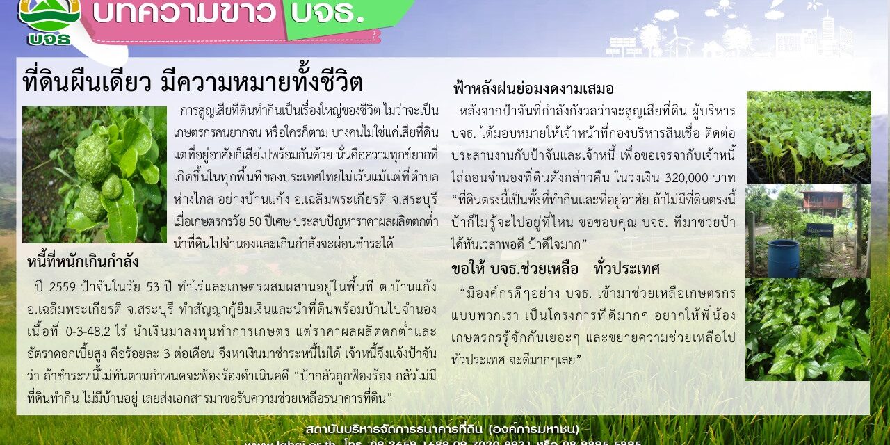 บจธ. ช่วยอะไรเกษตรกรที่เผชิญปัญหาสูญเสียที่ดินบ้าง ?