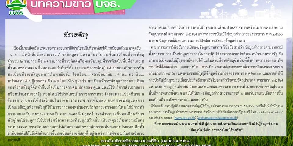 สำนักงานคณะกรรมการข้อมูลข่าวสารของราชการ ได้จัดทำบทความเผยแพร่ความรู้เกี่ยวกับพระราชบัญญัติข้อมูลข่าวสารของราชการ พ.ศ. 2540 ประจำเดือนตุลาคม 2564 ผ่านเว็บไซต์ www. oic.go.th ซึ่งสถาบันบริหารจัดการธนาคารที่ดิน เห็นว่าเป็นประโยชน์แก่สาธารณะ จึงนำมาเผยแพร่ เพื่อความเข้าใจมากยิ่งขึ้น และสามารถติดตามได้ทางเว็บไซต์ดังกล่าวได้เช่นกัน