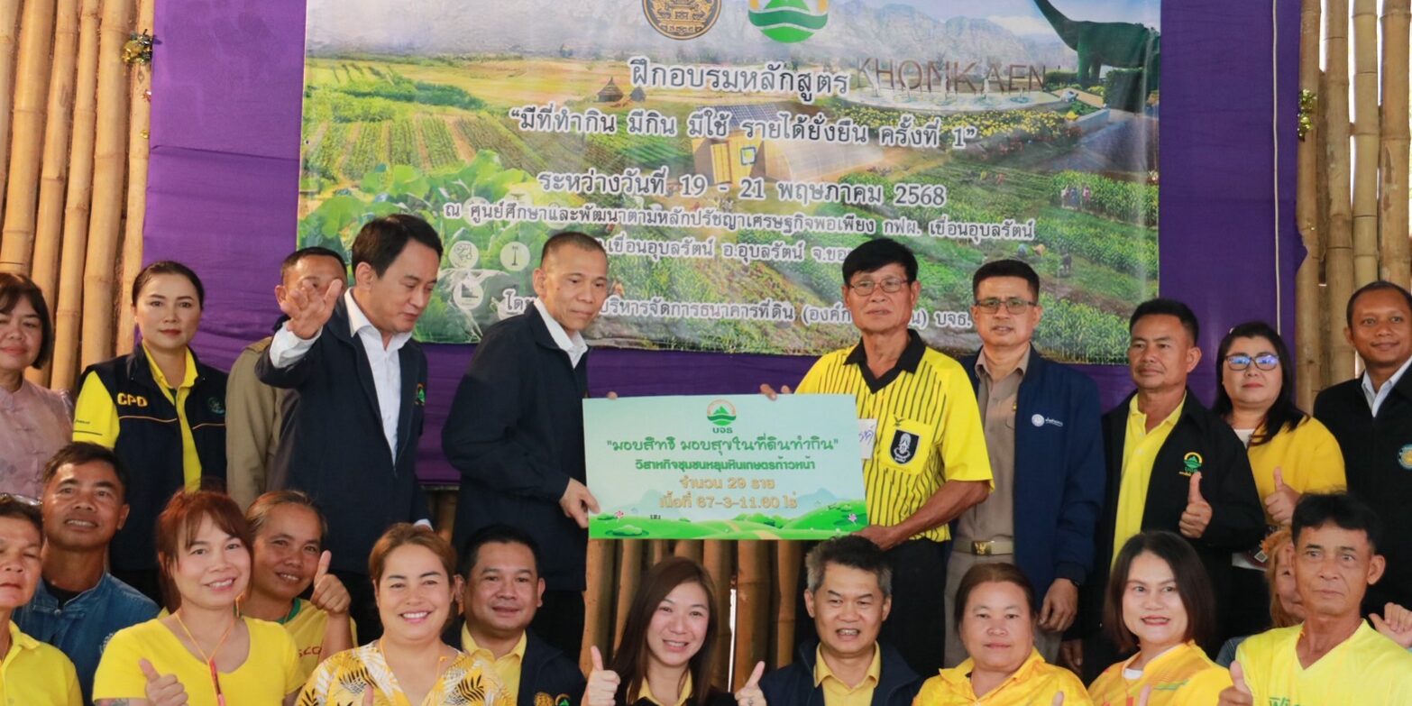 ธนาคารที่ดิน “มอบสิทธิ มอบสุขในที่ดินทำกิน” พร้อมจัดฝึกอบรมเกษตรกร “มีที่ทำกิน มีกิน มีใช้ รายได้ยั่งยืน” ให้แก่ วิสาหกิจชุมชนเกษตรผสมผสานบ้านท่อน อ.เมือง และวิสาหกิจชุมชนหลุมหินเกษตรก้าวหน้า อ.อุบลรัตน์ จ.ขอนแก่น