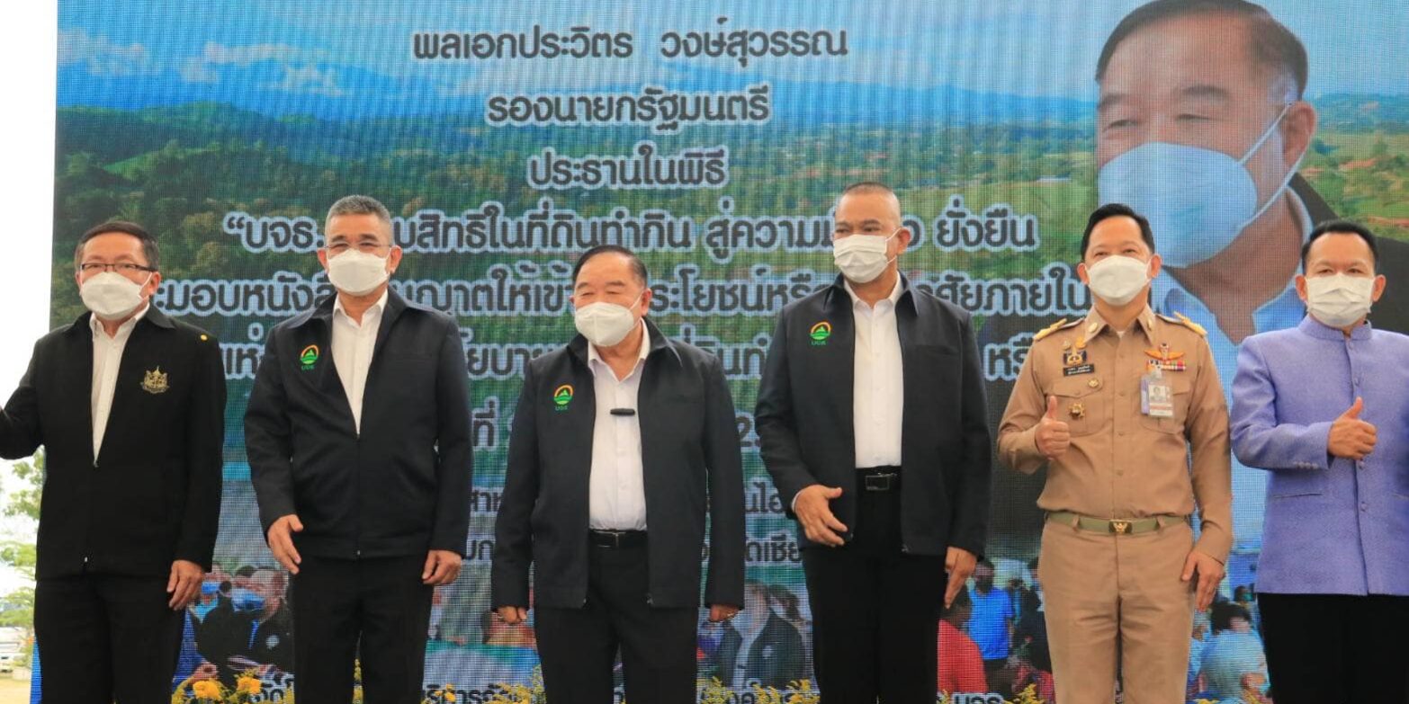 เมื่อเวลา 10.00 น. วันที่ 2 พฤษภาคม 2565 พลเอก ประวิตร วงษ์สุวรรณ รองนายกรัฐมนตรี ที่กำกับดูแลสถาบันบริหารจัดการธนาคารที่ดิน (องค์การมหาชน) เป็นประธานในพิธี “บจธ. มอบสิทธิในที่ดินทำกิน สู่ความมั่นคงและยั่งยืนและมอบหนังสืออนุญาตให้เข้าทำประโยชน์หรืออยู่อาศัยภายในเขตป่าสงวนแห่งชาติ ตามนโยบายการจัดที่ดินทำกินให้ชุมชน (คทช.)” โดยมี พลเอก ประวิตร วงษ์สุวรรณ รองนายกรัฐมนตรี เป็นประธาน และหัวหน้าส่วนราชการทั้งส่วนกลางและในพื้นที่รวมทั้งผู้บริหารองค์กรปกครองส่วนท้องถิ่นจังหวัดเขียงราย และเกษตรกรเข้าร่วมงาน เพื่อรับมอบนโยบายสู่การปฏิบัติจากพลเอกประวิตร และบูรณาการการทำงานร่วมกันของหน่วยงานในพื้นที่ ณ วิสาหกิจชุมชนเชียงรายอุ่นไอรักษ์ ตำบลริมกก อำเภอเมือง จังหวัดเชียงราย