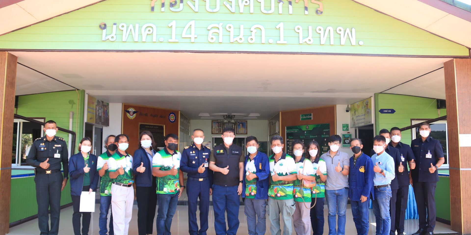 วันที่ 13 ธันวาคม 2565 นายกุลพัชร ภูมิใจอวด ผู้อำนวยการสถาบันบริหารจัดการธนาคารที่ดิน มอบหมาย นายเอก วรรณประทีป รองผู้อำนวยการฝ่ายปฏิบัติการและเจ้าหน้าที่ บจธ. ลงพื้นที่ ร่วมกับสมาชิกวิสาหกิจชุมชนเกษตรกรรุ่นใหม่พัฒนา ตำบลทับไทร อำเภอโป่งน้ำร้อน จังหวัดจันทบุรี เข้าร่วมพบปะหารือแนวทางความร่วมมือระหว่าง หน่วยพัฒนาการเคลื่อนที่ 14 สำนักงานพัฒนาภาค 1 หน่วยบัญชาการทหารพัฒนา จังหวัดตราด โดยมี ผบ.ช.พัฒนา นพค.14 สนภ.1 นทพ. น.ท.วีรวิชญ์ พิสิษฐ์โภคิน น.ท. ลาวา กิจพงศ์ หัวหน้าศูนย์ฝึก กสิกรรมธรรมชาติ และ ร.อ. บำรุง ละมัย หัวหน้าศูนย์ส่งกำลังบำรุง พัฒนาโครงสร้างพื้นฐาน ร่วมหารือแนวทางการพัฒนาพื้นที่และการส่งเสริมสนับสนุนและพัฒนาอาชีพเกษตรกรรมตามแนวทางหลักกสิกรรมธรรมชาติให้แก่พี่น้องวิสาหกิจชุมชนเกษตรกรรุ่นใหม่พัฒนาฯ โดย หน่วยพัฒนาการเคลื่อนที่ 14ฯ ยินดีให้การสนับสนุนอย่างเต็มที่ ในการพัฒนาโครงสร้างพื้นฐานและส่งเสริมอาชีพให้แก่พี่น้องเกษตรกร พร้อมกันนี้ยังได้นำสมาชิกวิสาหกิจชุมชนฯ เข้าศึกษาเรียนรู้ในแปลงสาธิตการเพาะเลี้ยงสัตว์น้ำจืด และนำชมศูนย์ฝึกกสิกรรมธรรมชาติของหน่วยฯ พี่น้องสมาชิกวิสาหกิจชุมชนเกษตรกรรุ่นใหม่พัฒนา นำโดย นายสรศักดิ์ บุญอำไพ ประธานวิสาหกิจชุมชนฯ กล่าวว่า รู้สึกดีใจและขอบคุณอย่างยิ่งที่ นพค. 14 จะได้เข้ามาเป็นพี่เลี้ยงให้ความรู้สมาชิกในการทำเกษตรตามหลักปรัชญาของเศรษฐกิจพอเพียง มีพันธ์ุปลา พันธุ์ไก่ พร้อมสนับสนุนให้พี่น้องเกษตรกรในพื้นที่ได้มีความรู้และความเป็นอยู่ที่ดีขึ้น ขอบคุณ บจธ. มากๆ ที่ช่วยมาเป็นตัวกลางประสานความร่วมมือในพื้นที่ให้การทำงานร่วมกับหน่วยงานของรัฐมีความคล่องตัวมากยิ่งขึ้น