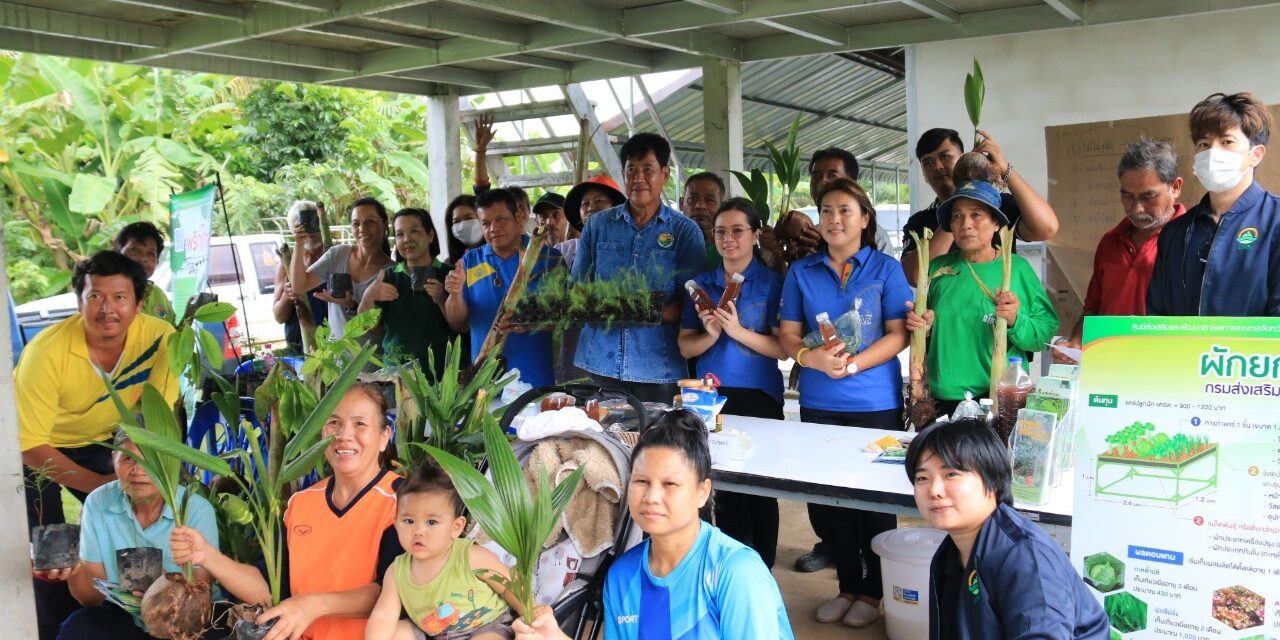 นอกจากนี้คณะวิทยากรยังสาธิตการทำน้ำยาล้างจานใช้เอง และมอบกล้าพันธุ์ไม้หลายชนิด เช่นมะพร้าว กล้วยน้ำว้า กล้วยหอม หน่อไม้ฝรั่ง ขมิ้นชัน และกระชาย ให้สมาชิกวิสาหกิจชุมชนรวมพลังสร้างอาชีพซึ่งมีจำนวน 22 ครัวเรือน ไปปลูกในแปลงที่ดินที่ได้รับการสนับสนุนจาก บจธ. เนื้อที่ 117 ไร่เศษอีกด้วย