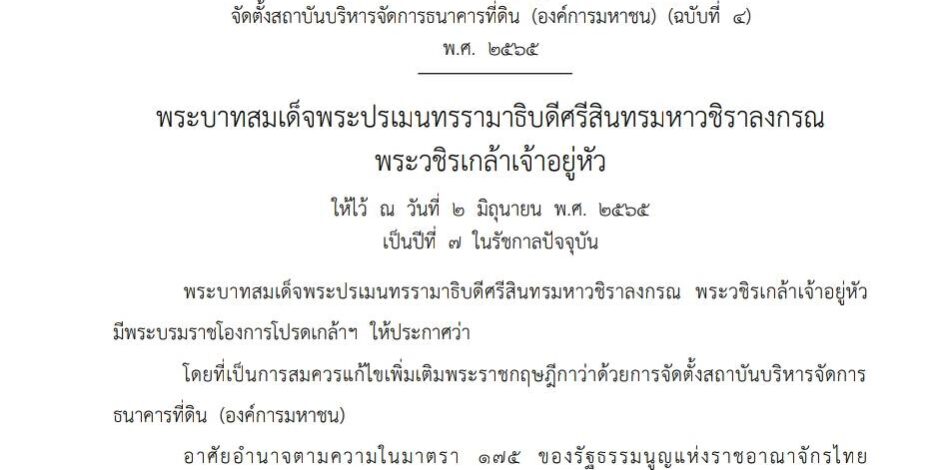มิ.ย.22022ข่าวประชาสัมพันธ์พระราชกฤษฎีกาจัดตั้งสถาบันบริหารจัดการธนาคารที่ดิน (ฉบับที่ 4 ) พ.ศ. 2565 ลงประกาศราจกิจจานุเบกษา วันที่ 2 มิถุนายน 2565 จำนวนผู้เข้าชม : 1,044 Category: ข่าวประชาสัมพันธ์By Pannarutมิถุนายน 2, 2022 Author: Pannarut Post navigationPreviousPrevious post:ท่ากอม่วง เร่งพัฒนาทุกด้าน ตั้งแต่โครงสร้างพื้นฐานจนถึงอาชีพ บจธ. บูรณาการทุกหน่วยงานมาร่วมทำงานอย่างเข้มข้นNextNext post:ผู้ว่าฯ เชียงราย สั่งการหน่วยงานบูรณาการการทำงานระดับพื้นที่ร่วม บจธ.Related postsธนาคารที่ดิน ขอแสดงความยินดี นายอนุทิน ชาญวีรกุล ในโอกาสได้รับพระราชโองการ โปรดเกล้าฯ แต่งตั้งให้ดำรงค์ตำแหน่ง นายกรัฐมนตรี คนที่ 32เมษายน 1, 2026”ธนาคารที่ดิน“ ร่วมประชุม คณะอนุกรรมการส่งเสริมพัฒนาอาชีพและการตลาด ครั้งที่ 1/2569กุมภาพันธ์ 19, 2026บจธ. ร่วมแสดงความยินดี สคทช.ครบรอบ 5 ปีกุมภาพันธ์ 11, 2026ผอ.ธนาคารที่ดิน นำคณะผู้บริหารและเจ้าหน้าที่ ร่วมพิธีวางพวงมาลาเนื่องใน “วันทหารผ่านศึก” ประจำปี 2569 ณ อนุสาวรีย์ชัยสมรภูมิกุมภาพันธ์ 3, 2026“ธนาคารที่ดิน” ร่วมบำเพ็ญกุศลและทำบุญตักบาตรถวายสมเด็จพระนางเจ้าสิริกิติ์ พระบรมราชินีนาถ พระบรมราชชนนีพันปีหลวง เนื่องในพระราชพิธีทรงบำเพ็ญพระราชกุศลสตมวารและร่วมกิจกรรม “รวมพลังแห่งความภักดี”มกราคม 31, 2026บจธ. เดินหน้าพัฒนาศักยภาพบุคลากร จัดอบรม “การเงิน-การลงทุน และ AI” มุ่งยกระดับประสิทธิภาพการทำงานสู่องค์กรดิจิทัล พร้อมประกาศเจตนารมณ์ขององค์กร ว่าจะไม่ทนต่อการทุจริตทุกรูปแบบ และ(No Gift Policy) ในปีงบประมาณ 2569มกราคม 9, 2026