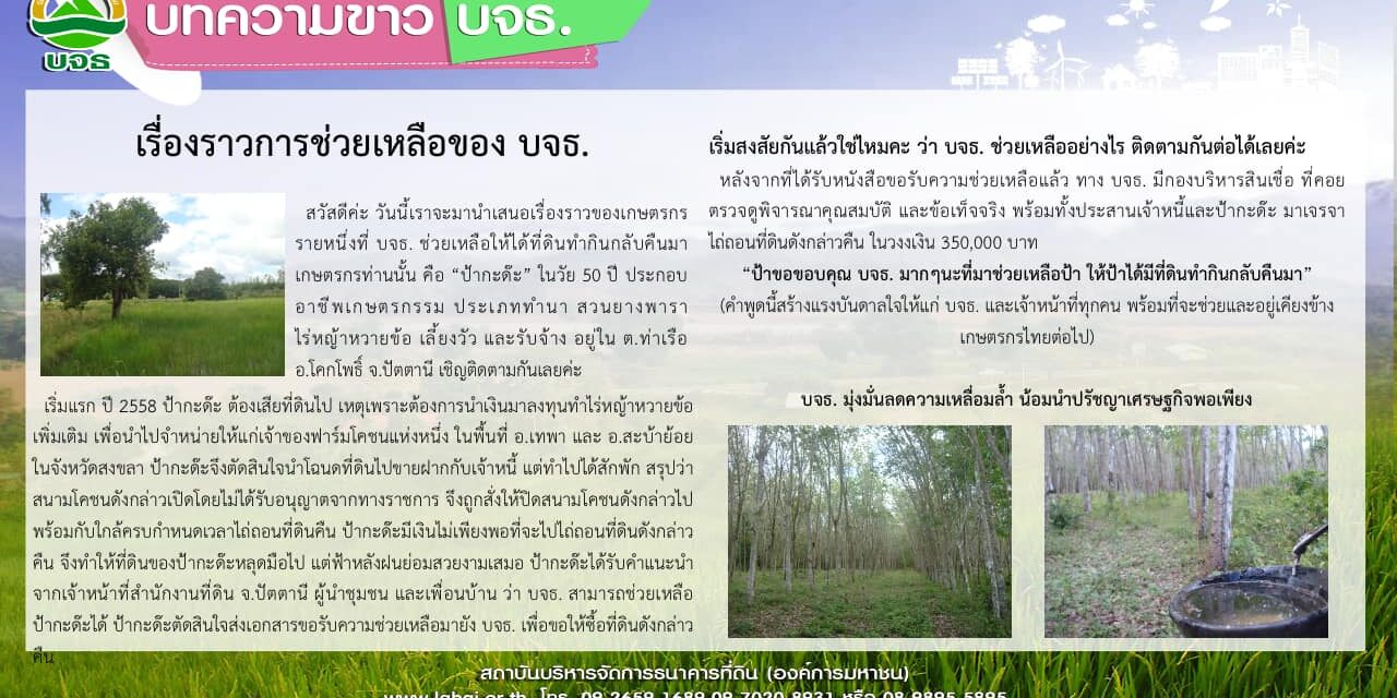 พ.ย.202021ข่าวประชาสัมพันธ์“ป้าขอขอบคุณ บจธ. มากๆนะ ที่มาช่วยเหลือป้า ให้ป้าได้มีที่ดินทำกินกลับคืนมา” จำนวนผู้เข้าชม : 631 Category: ข่าวประชาสัมพันธ์By Pannarutพฤศจิกายน 20, 2021 Author: Pannarut Post navigationPreviousPrevious post:บอร์ด บจธ. หนุนขับเคลื่อนร่างกฎหมายจัดตั้งสถาบันฯ พร้อมพิจารณาแต่งตั้งอนุกรรมการกฎหมายเพิ่มเติมNextNext post:วสช. รวมพลังสร้างอาชีพวัดประดู่ สุราษฎร์ฯ พัฒนาต่อเนื่อง บจธ. ประสานประสานท้องถิ่นร่วมหนุนเสริมRelated postsธนาคารที่ดิน ขอแสดงความยินดี นายอนุทิน ชาญวีรกุล ในโอกาสได้รับพระราชโองการ โปรดเกล้าฯ แต่งตั้งให้ดำรงค์ตำแหน่ง นายกรัฐมนตรี คนที่ 32เมษายน 1, 2026”ธนาคารที่ดิน“ ร่วมประชุม คณะอนุกรรมการส่งเสริมพัฒนาอาชีพและการตลาด ครั้งที่ 1/2569กุมภาพันธ์ 19, 2026บจธ. ร่วมแสดงความยินดี สคทช.ครบรอบ 5 ปีกุมภาพันธ์ 11, 2026ผอ.ธนาคารที่ดิน นำคณะผู้บริหารและเจ้าหน้าที่ ร่วมพิธีวางพวงมาลาเนื่องใน “วันทหารผ่านศึก” ประจำปี 2569 ณ อนุสาวรีย์ชัยสมรภูมิกุมภาพันธ์ 3, 2026“ธนาคารที่ดิน” ร่วมบำเพ็ญกุศลและทำบุญตักบาตรถวายสมเด็จพระนางเจ้าสิริกิติ์ พระบรมราชินีนาถ พระบรมราชชนนีพันปีหลวง เนื่องในพระราชพิธีทรงบำเพ็ญพระราชกุศลสตมวารและร่วมกิจกรรม “รวมพลังแห่งความภักดี”มกราคม 31, 2026บจธ. เดินหน้าพัฒนาศักยภาพบุคลากร จัดอบรม “การเงิน-การลงทุน และ AI” มุ่งยกระดับประสิทธิภาพการทำงานสู่องค์กรดิจิทัล พร้อมประกาศเจตนารมณ์ขององค์กร ว่าจะไม่ทนต่อการทุจริตทุกรูปแบบ และ(No Gift Policy) ในปีงบประมาณ 2569มกราคม 9, 2026