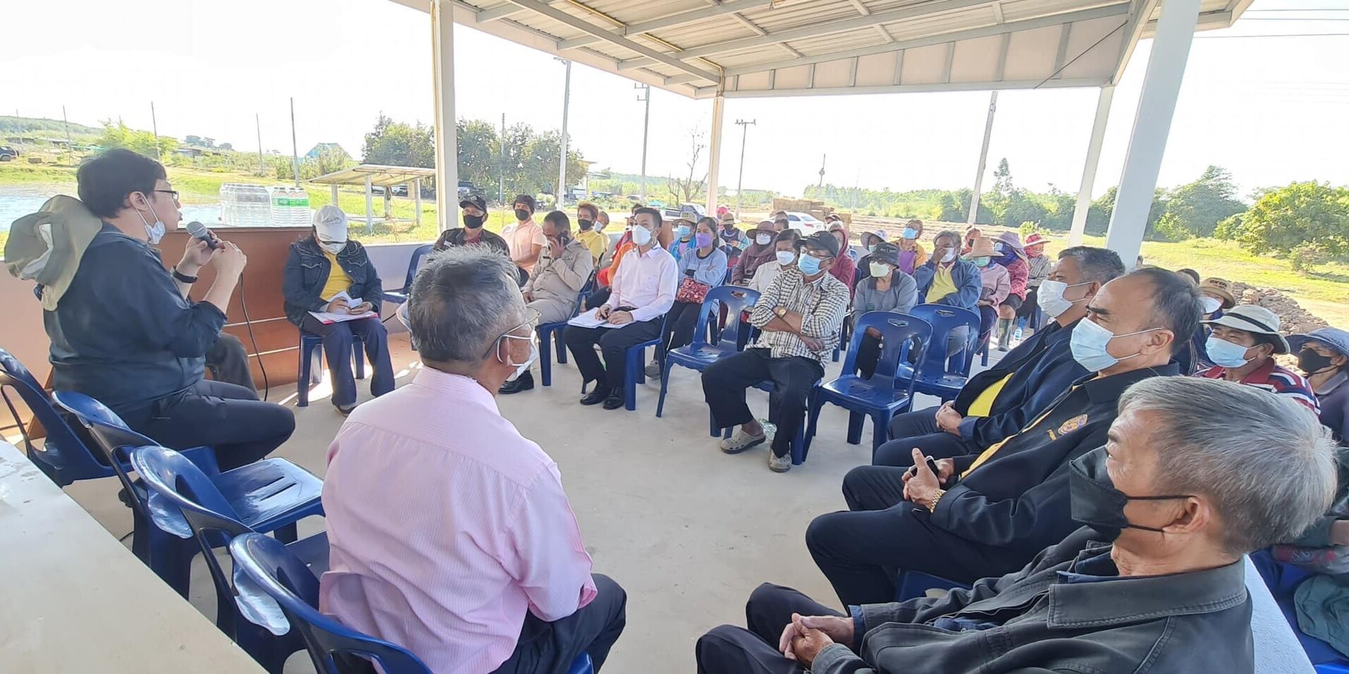 นายกุลพัชร ภูมิใจอวด ผู้อำนวยการสถาบันบริหารจัดการธนาคารที่ดิน (องค์การมหาชน ) มอบหมายนายเอก วรรณประทป รองผู้อำนวยการ บจธ. นายศิลา เส็งพานิช ผู้อำนวยการกองบริหารจัดการที่ดิน นางนัยน์รัตน์ เผดิมรอด ภู่งาม ผู้อำนวยการกองกฎหมายและงานคดี และนายสุทธิโรจน์ คำมั่น ผู้อำนวยการกองทรัพยากรบุคคล ประชุมชี้แจงการจัดกิจกรรม “ บจธ.มอบที่ดินทำกิน ตามหลักปรัชญาเศรษฐกิจพอเพียง” ร่วมกับสมาชิกวิสาหกิจชุมชนไร่นาสวนผสมเกษตรกรฐานรากช่องโคพัฒนา ต.รังกาใหญ่ อ.พิมาย จ.นครราชสีมา และการเตรียมความพร้อมจัดเวทีเสวนาขับเคลื่อนร่างพระราชบัญญัติจัดตั้งสถาบันบริหารจัดการที่ดินและกระจายการถือครองที่ดินอย่างเป็นธรรมและยั่งยืน พ.ศ…. ระหว่างวันที่ 26 – 27 ธันวาคม 2564 โดย รองนายกรัฐมนตรี พลเอกประวิตร วงษ์สุวรรณ จะเดินทางไปเป็นประธานในวันที่ 27 ธันวาคม 2564