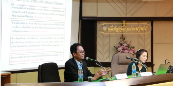 (ผู้อำนวยการส่วนบริหารงานรังวัดทำแผนที่เพื่องานออกโฉนดที่ดิน) เป็นวิทยากรให้ความรู้เบื้องต้นเกี่ยวกับ ขั้นตอนการจดทะเบียนสิทธิและนิติกรรม ซื้อขาย ขายฝาก จำนอง อัตราค่าฤชาธรรมเนียมต่างๆ ขั้นตอนการรังวัดสอบเขต แบ่งแยก และรวมโฉนดที่ดิน ณ ห้องประชุม 509 ชั้น 5 อาคาร ธกส. (สาขานางเลิ้ง)