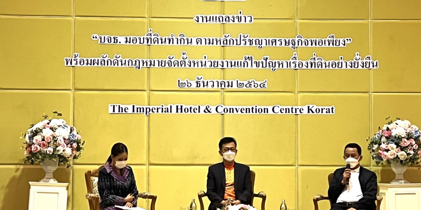 วันที่ 26 ธันวาคม 2564 รองผู้ว่าราชการจังหวัดนครราชสีมา นายสมเกียรติ วิริยะกุลนันท์ กล่าวในการแถลงข่าว บจธ.มอบที่ดินทำกิน ตามหลักเศรษฐกิจพอเพียง เมื่อวันที่ 26 ธันวาคม 2564 ณ โรงแรมอิมพีเรียล โฮเท็ล แอนด์ คอนเวนชั่น เซ็นเตอร์ โคราช กล่าวถึงการแก้ปัญหาที่ดินทำกิน โดยการสนับสนุนจากรัฐบาล และ มอบหมายสถาบันบริหารจัดการธนาคารที่ดิน (องค์การมหาชน) บจธ. ดำเนินการ และสามารถบริหารจัดการที่ดินทำกินโดยเฉพาะพื้นที่วิสาหกิจชุมชนไร่นาสวนผสมเกษตรกรฐานรากช่องโคพัฒนา ต.รังกาใหญ่ อ.พิมาย จ.นครราชสีมา ที่ใช้แนวคิดเกษตรทฤษฎีใหม่เป็นแนวทาง