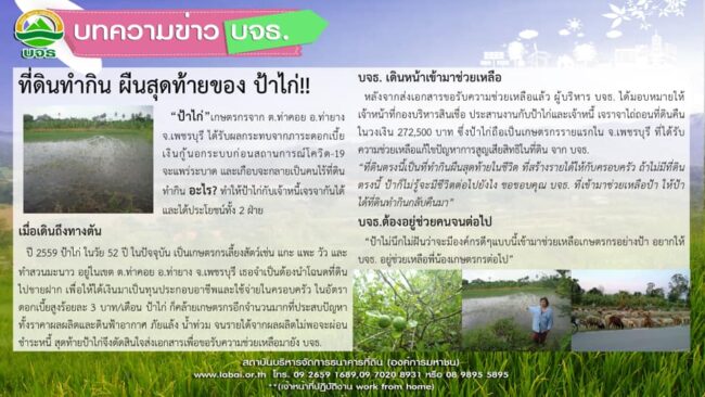 วันที่ 30 สิงหาคม 2564 นายกุลพัชร ภูมิใจอวด ผู้อำนวยการสถาบันบริหารจัดการธนาคารที่ดิน (องค์การมหาชน ) หรือ บจธ. มอบหมายให้ นายเอก วรรณประทีป รองผู้อำนวยการฝ่ายปฏิบัติการ กำกับดูแลโครงการที่ดินปันสุข ซึ่งเป็นโครงการที่ให้เจ้าของที่ดินและผู้ลงทะเบียนใช้ที่ดินไว้กับกองการตลาด โดย บจธ. เป็นตัวกลางในการจับคู่และลงนามในสัญญาใช้ประโยชน์ในที่ดิน ล่าสุดได้มีการลงนามสัญญาการใช้ประโยชน์ที่ดินเนื้อที่ 5 ไร่ 2 งานเศษ ในพื้นท่ี ต.สันติสุข อ.ดอยหล่อ จ.เชียงใหม่ ระยะเวลา 3 ปี โดยเจ้าของที่ดินไม่คิดค่าเช่า และมีเกษตรกรเข้าใช้ประโยชน์ 4 ราย สำหรับโครงการตลาดกลางที่ดิน ที่มีเจ้าของที่ดินและผู้ที่ต้องการใช้ประโยชน์ที่ดิน ลงทะเบียนผ่านเว็บไซต์ บจธ. ได้พัฒนาสู่โครงการที่ดินปันสุข ที่สถาบันบริหารจัดการธนาคารที่ดิน (องค์การมหาชน) ได้สร้างเครื่องมือและช่องทางในการจับคู่เจ้าของที่ดินกับผู้เช่าหรือผู้ต้องการใช้ประโยชน์ที่ดินเพื่อการเกษตรที่เป็นรูปธรรม สร้างความไว้เนื้อเชื่อใจและ บจธ. ทำหน้าที่คนกลางอำนวยความสะดวกให้ทั้งสองฝ่ายได้พบกันและลงพื้นที่จริง โดยก่อนหน้านี้ บจธ. มีต้นแบบการจับคู่ใช้ประโยชน์ที่ด…